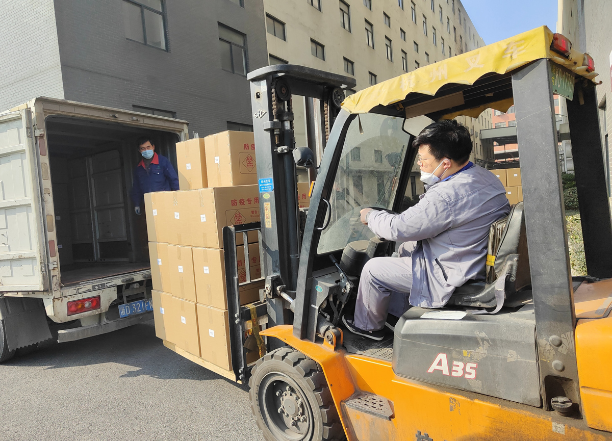 在華藥物流倉儲(chǔ)基地,相關(guān)物資驗(yàn)收入庫,再裝箱出庫分發(fā)給包裝前線,配送車馬不停蹄,來回運(yùn)轉(zhuǎn)……