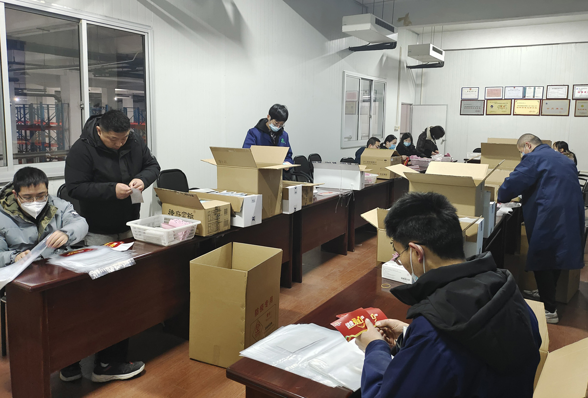 及時(shí)將健康愛心包送到全區(qū)老年人手里,為他們送上一份寒冬里的防疫保障,公司全體員工紛紛投入到愛心包的生產(chǎn)和包裝制作中來。