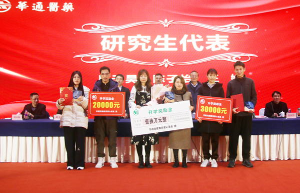 大會(huì)還舉行了“華通醫(yī)藥黨建愛(ài)心基金”職工子女升學(xué)獎(jiǎng)勵(lì)儀式,部分職工子女代表參加領(lǐng)獎(jiǎng)。2023年接受九年制義務(wù)教育、高中、本科、研究生共計(jì)67人,獎(jiǎng)勵(lì)金額42萬(wàn)元。隨后,還進(jìn)行了《陽(yáng)明心學(xué)》的書(shū)籍捐贈(zèng)。